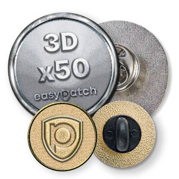 Spersonalizowana metalowa przypinka 3D 25x25mm - 50 sztuk